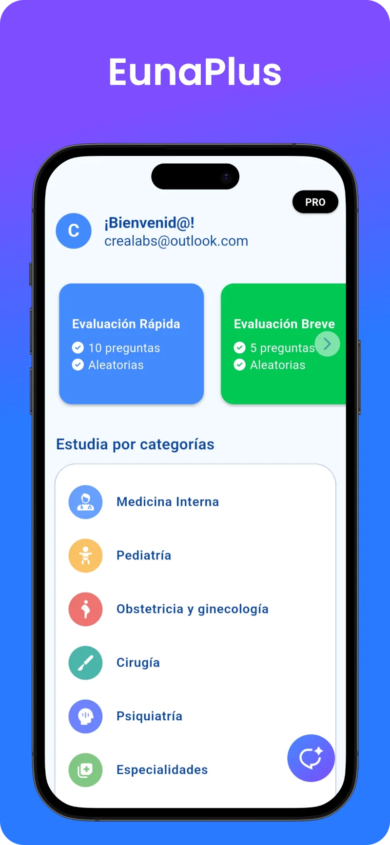 Cross-platform educational app (iOS and Android) that generates EUNACOM-style exams using artificial intelligence. It offers advanced performance statistics and a dynamic study environment to optimize medical preparation.